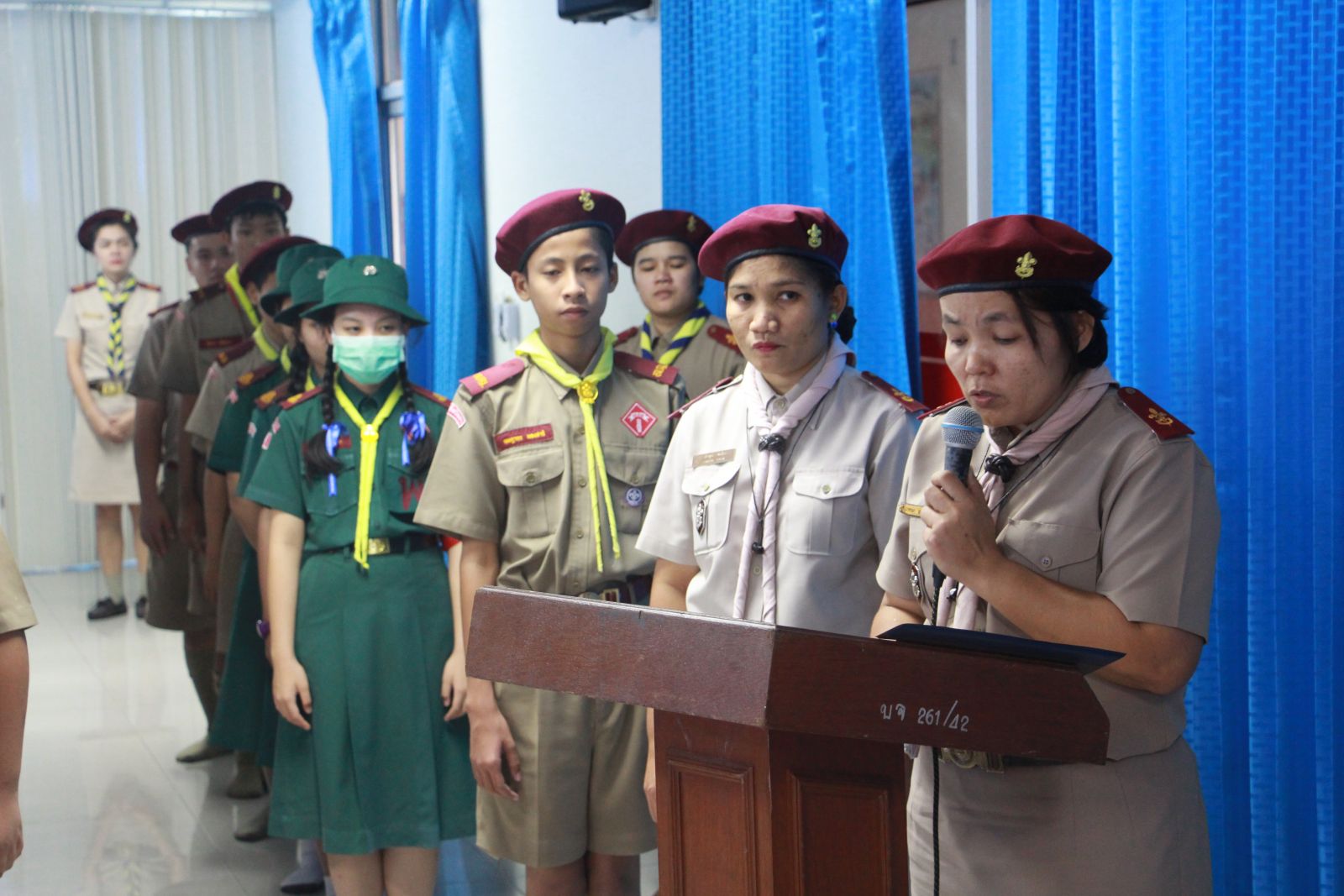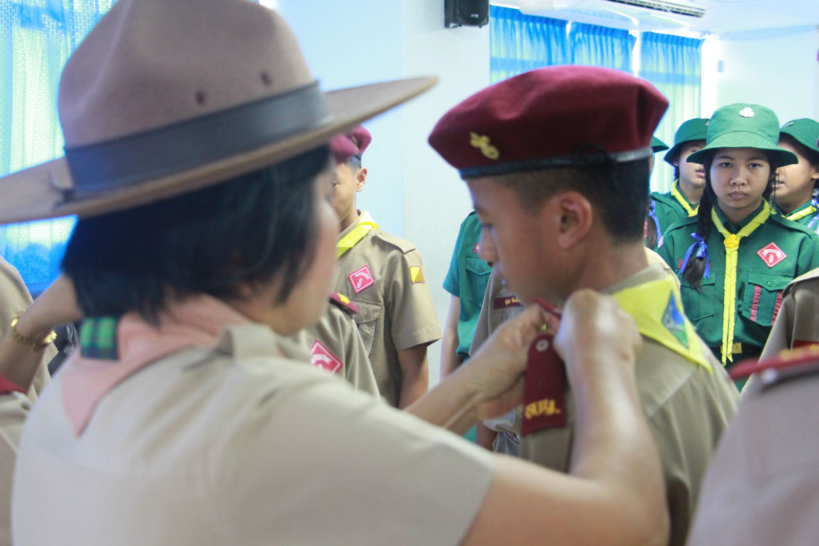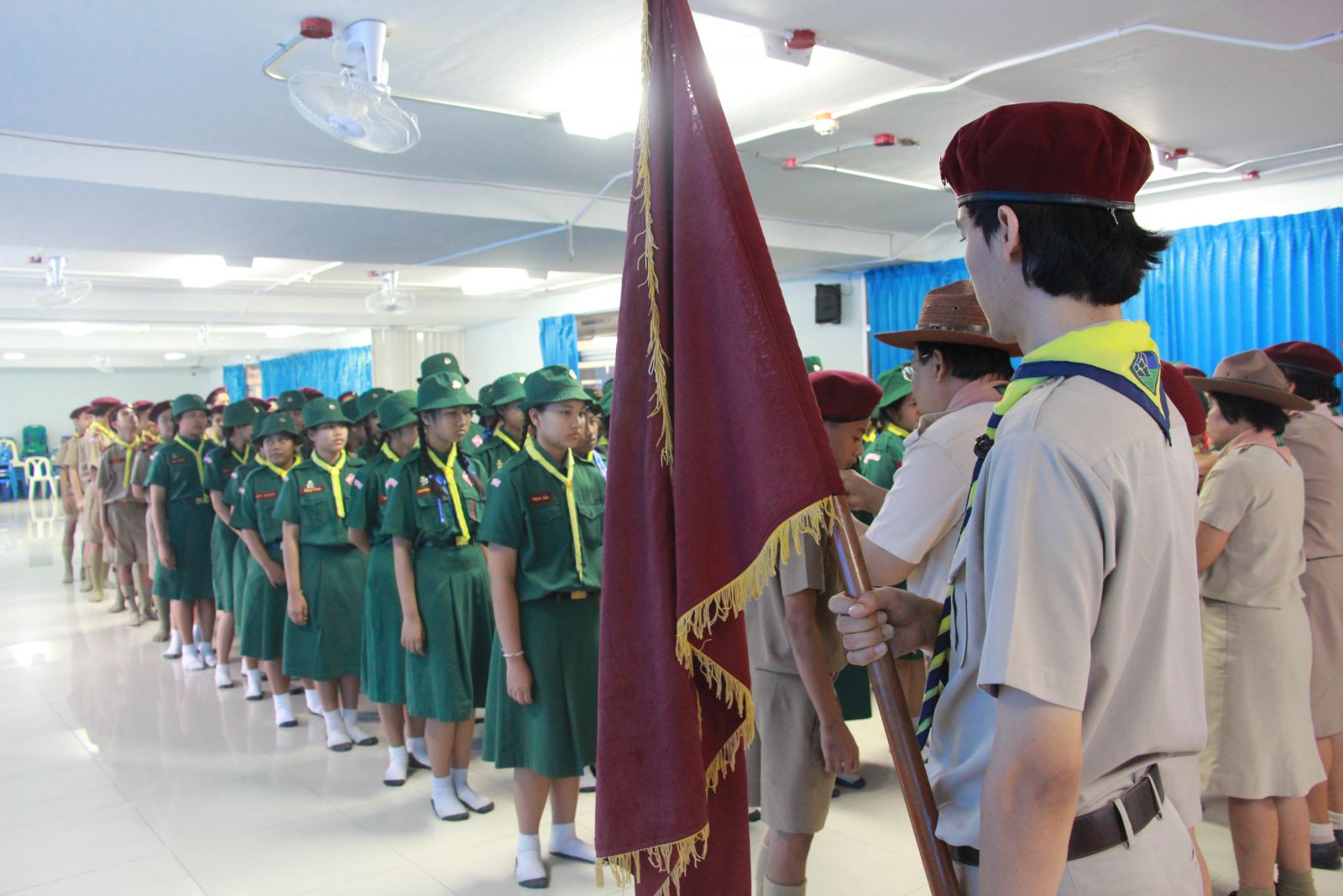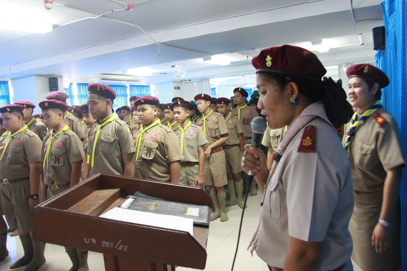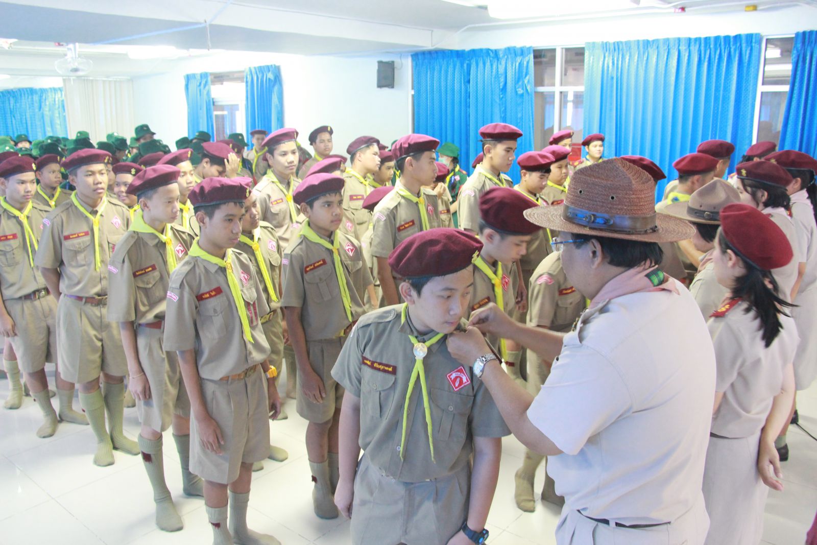 ลูกเสือสามัญรุ่นใหญ่ ชั้น ม.๑ เข้ารับการประดับอินธนู จากผู้บังคับบัญา โดยมี นายสนธยา ตุ๋นเจริญ รองผู้อำนวยการกองลูกเสือโรงเรียน เป็นประธานประดับอินธนู วันที่ 11 กุมภาพันธ์ 2558