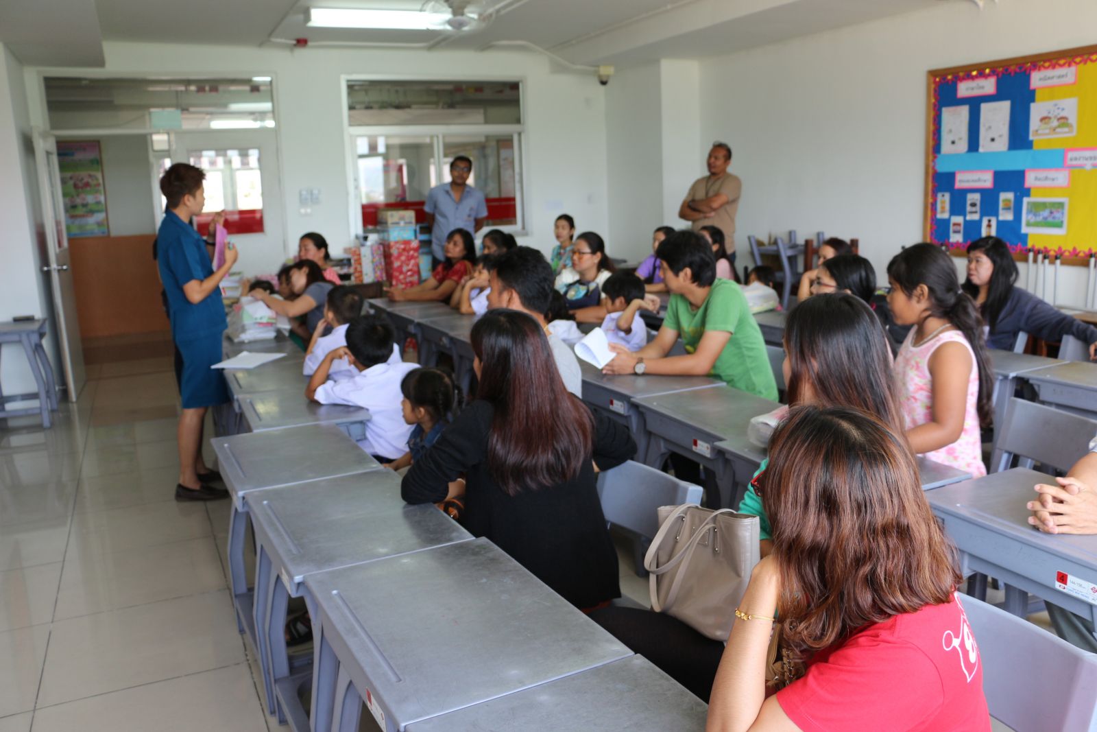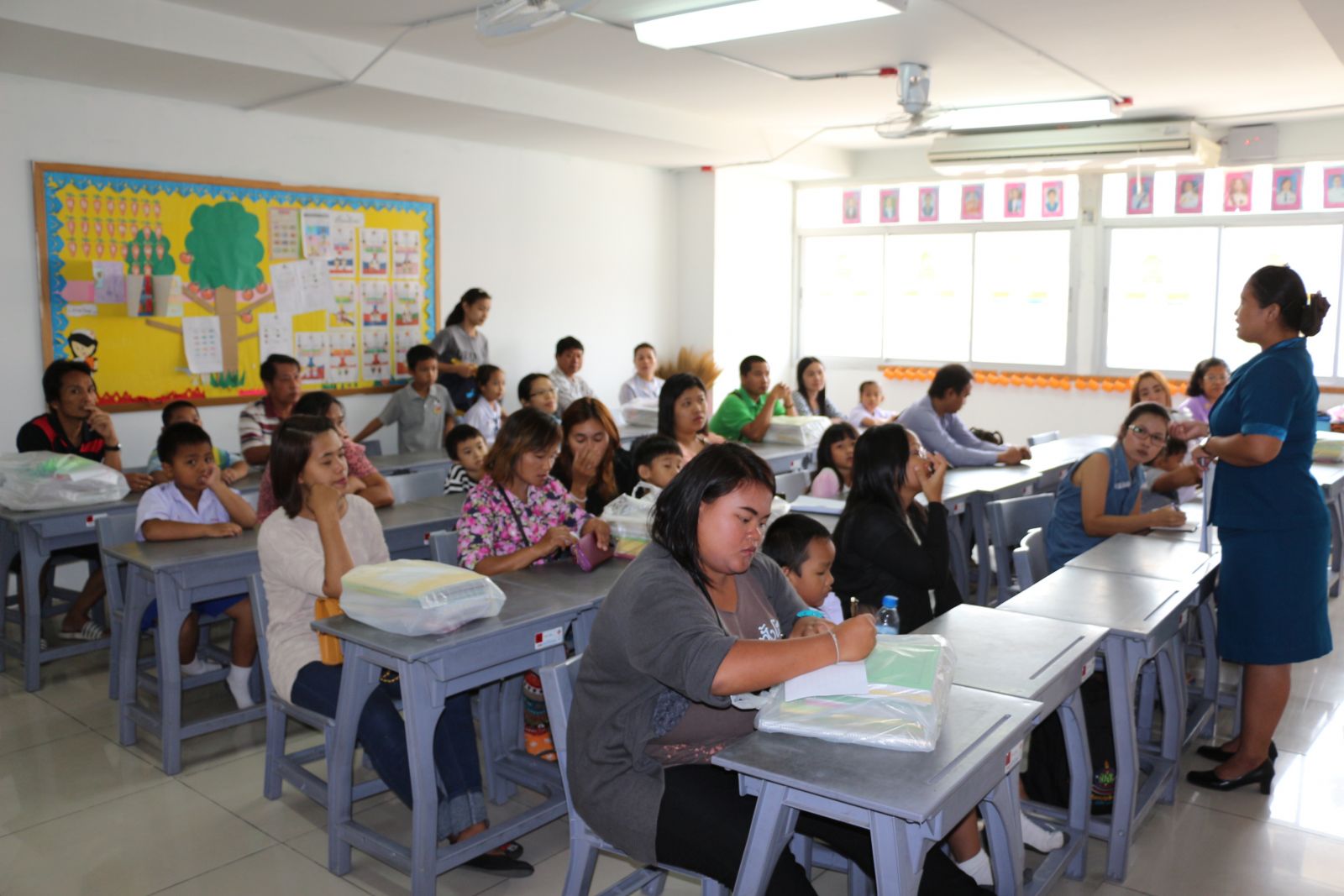 27 เมษายน 2558 กิจกรรมปฐมนิเทศผู้ปกครองนักเรียนระดับชั้นอนุบาล 1 ,ประถมศึกษาปีที่ 1และมัธยมศึกษาปีที่ 1 จำหน่ายอุปกรณ์การเรียน หนังสือเรียนและ ผู้ปกครองรับสิทธิ์โครงการเรียนฟรี 15 ปี