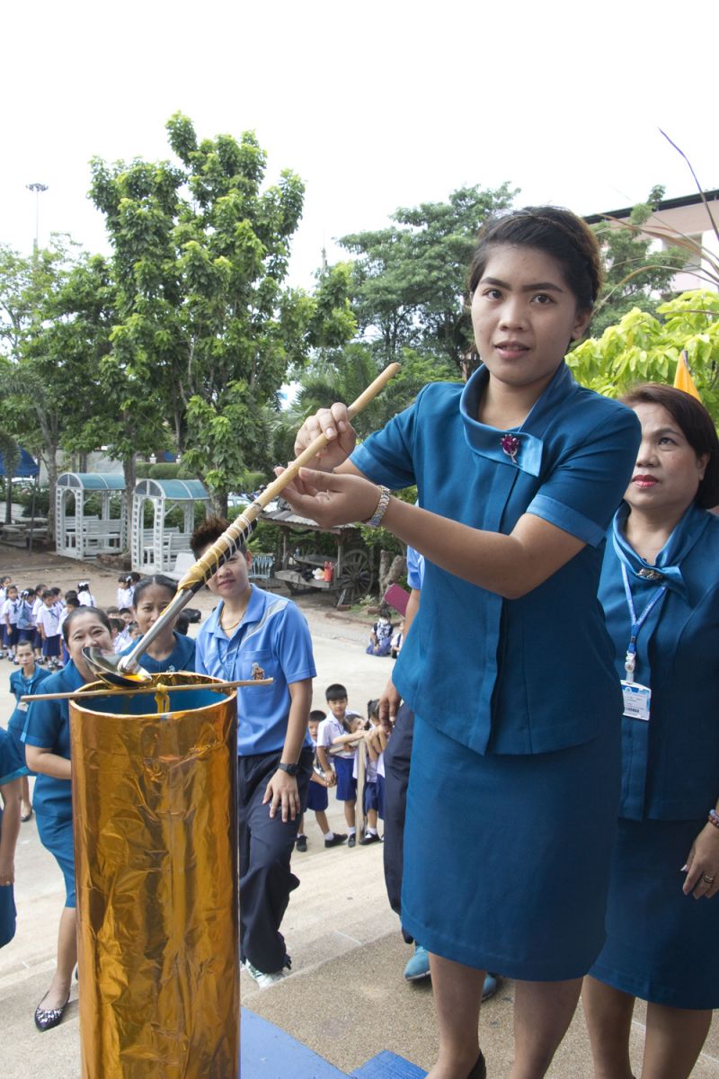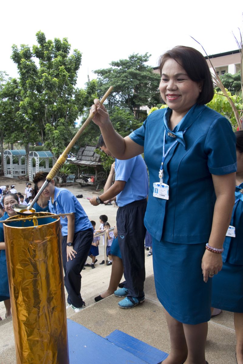 จัดพิธีหล่อเทียนจำนำพรรษาในเทศกาลเข้าพรรษา โดยคณะครูกลุ่มสาระการเรียนรู้สังคมศึกษาศาสนาและวัฒนธรรม