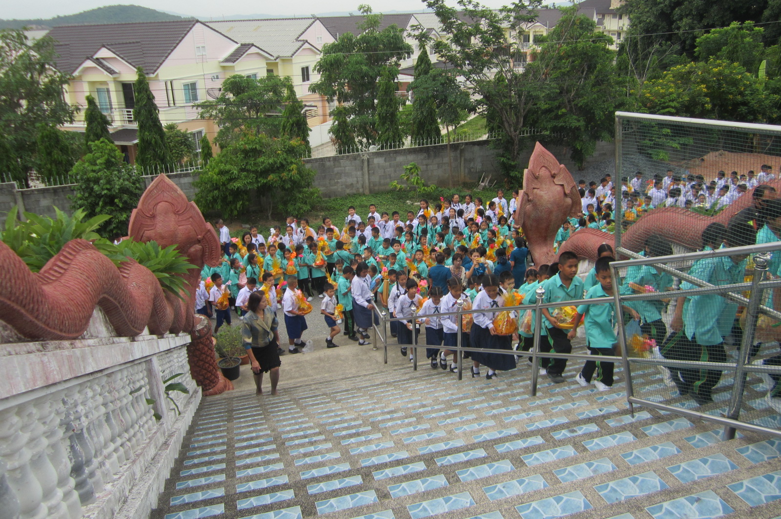 ถวายเทียนจำนำพรรษาวัดเขาทุ่งวัว นักเรียนระดับชั้นประถมศึกษาปีที่ 4 - 5