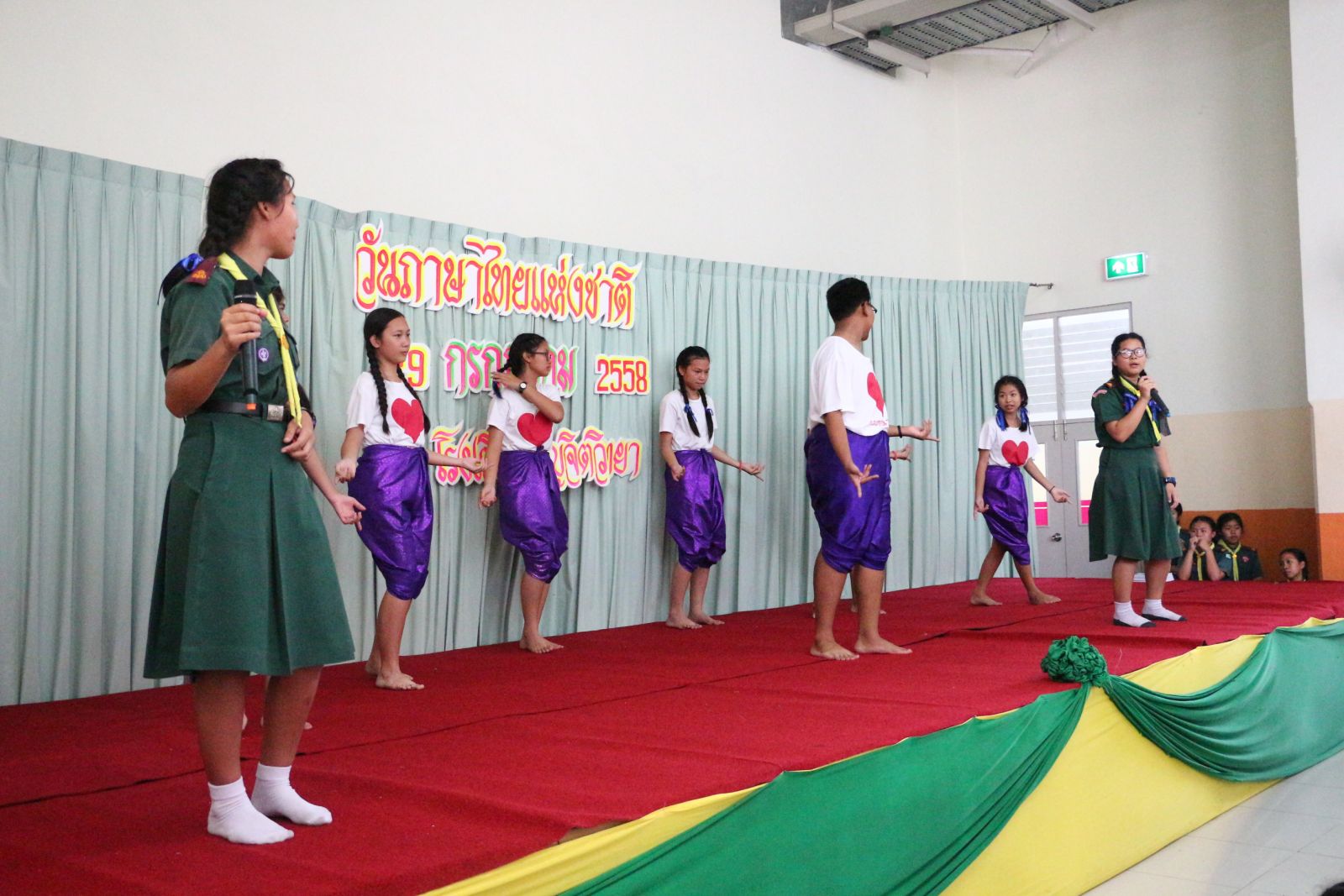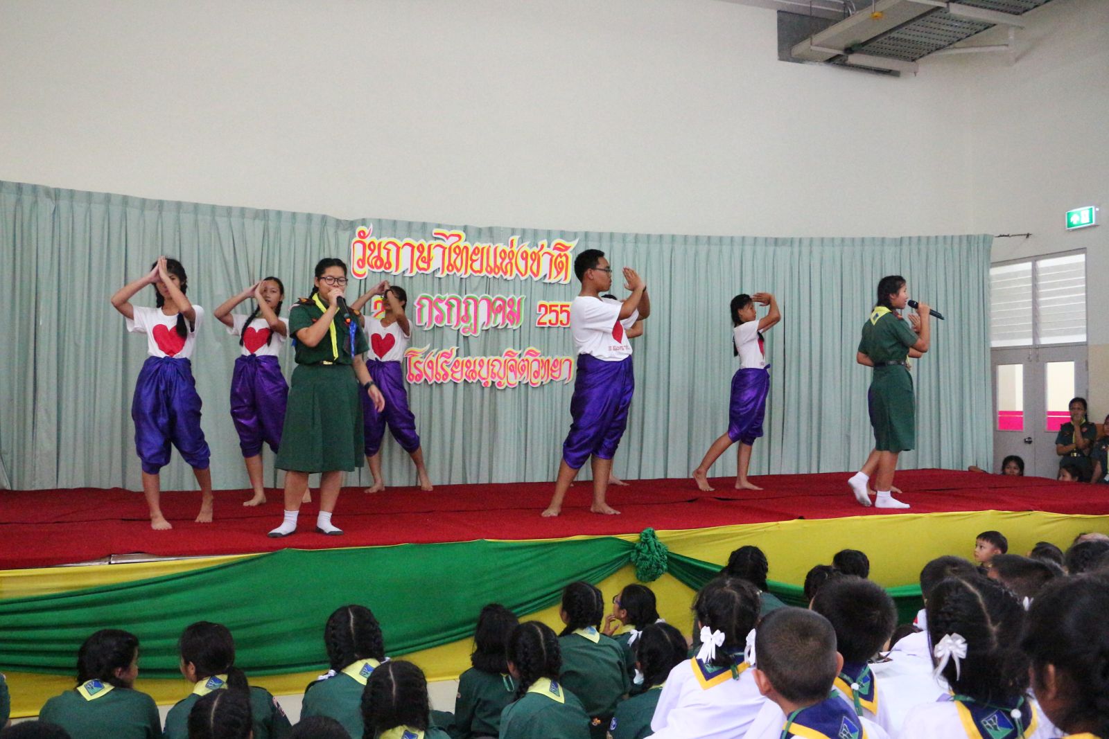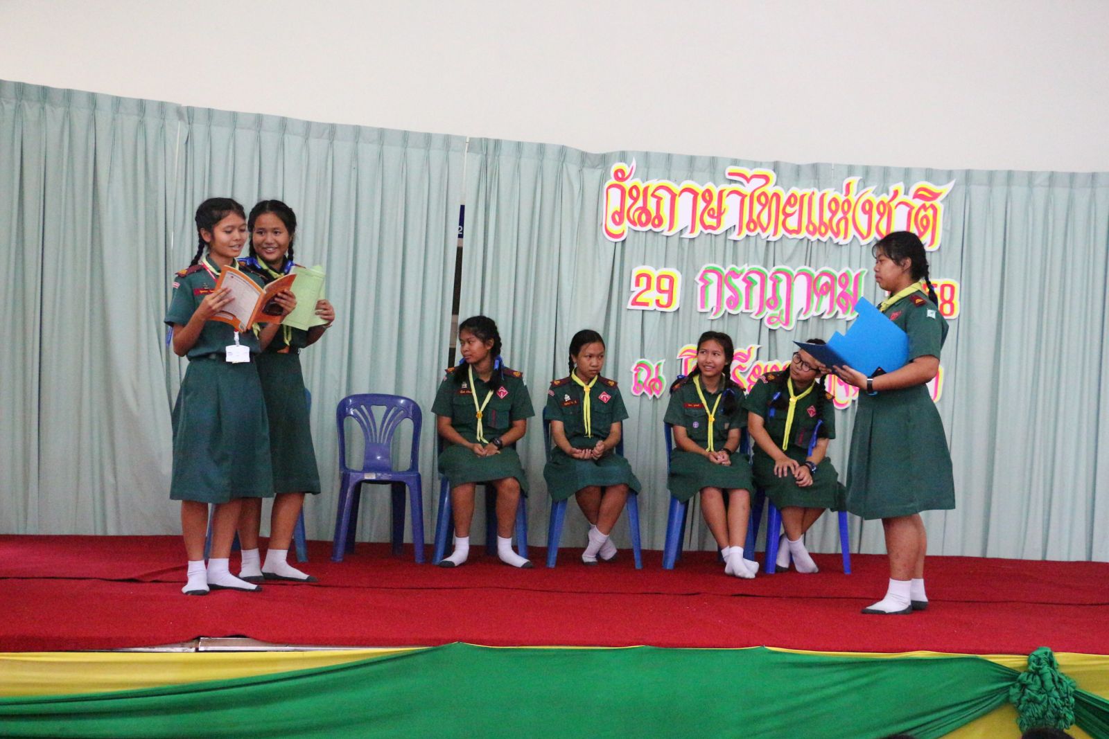 และรุ่นพี่ชั้นมัธยมร่วมกันแสดงละครเกี่ยวกับการใช้ภาษาไทยที่ถูกต้อง