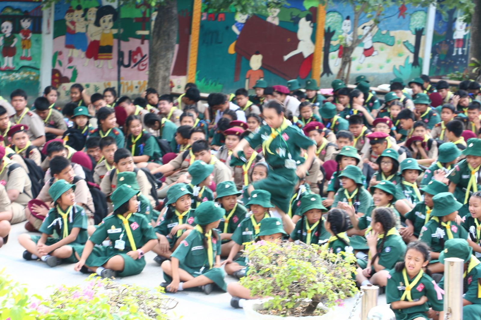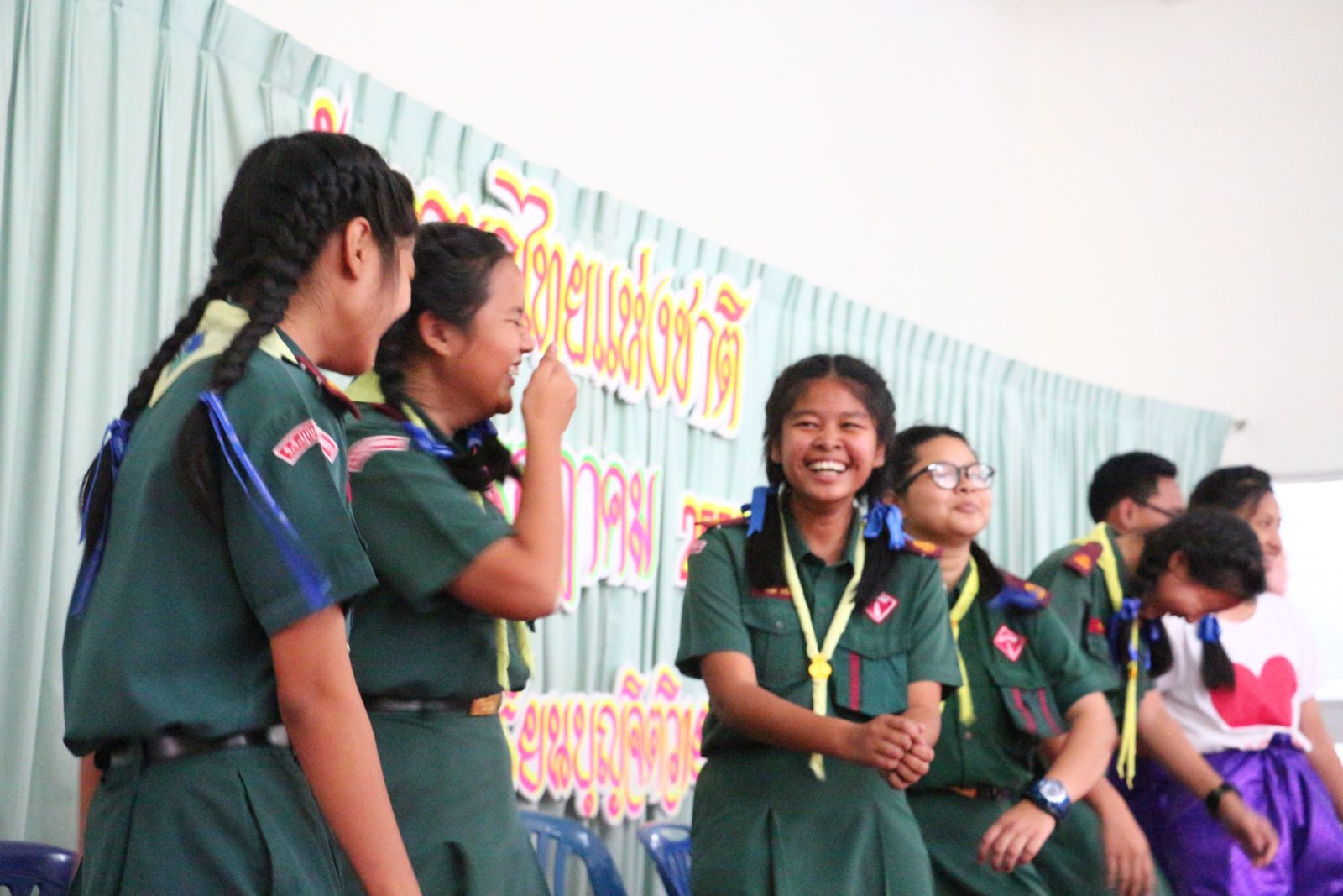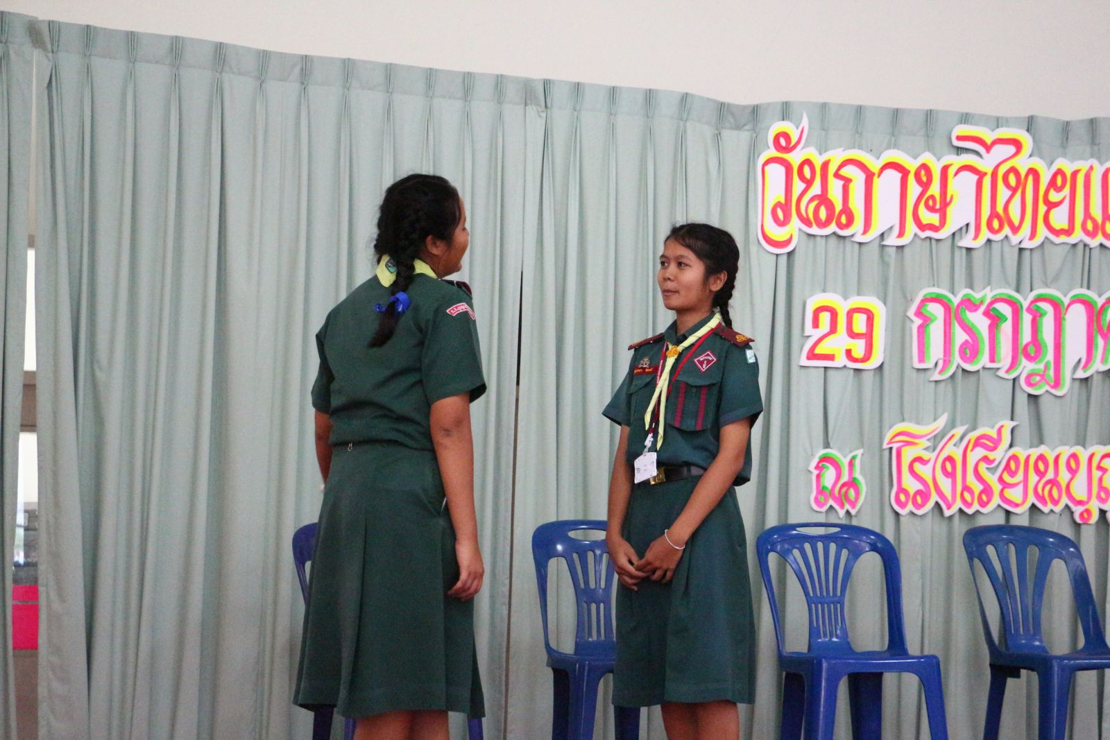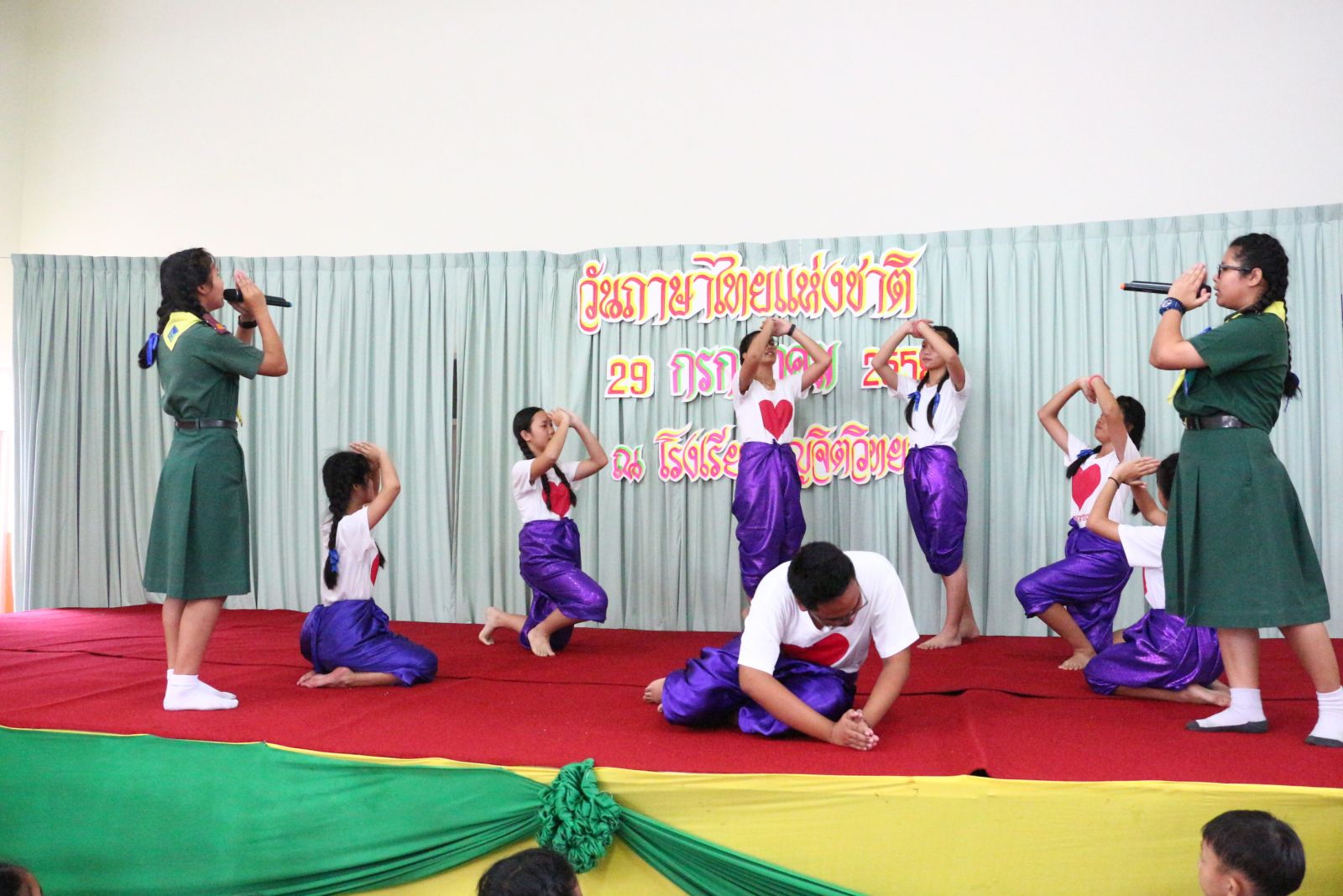 และรุ่นพี่ชั้นมัธยมร่วมกันแสดงละครเกี่ยวกับการใช้ภาษาไทยที่ถูกต้อง