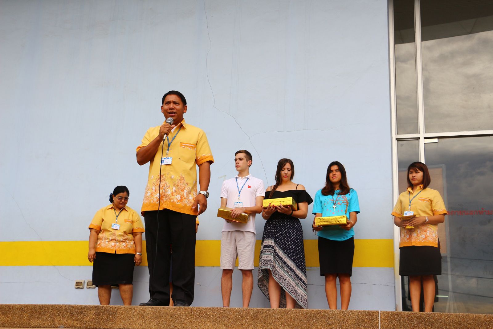 28 สิงหาคม 2558 ส่งครูโครงการผู้ช่วยสอนภาษาอังกฤษ ครบวางระการสอน โดยมี ดร.จักรกฤช กันทอง ผู้อำนวยการ กล่าวขอบคุณ พร้อมมอบของที่ระลึกให้กับครูพิเศษชาวอังกฤษ 3 ท่าน ในโครงการมีรายชื่อดังนี้ Thomas Richardson Natalie Rebecca Donna Stephanie