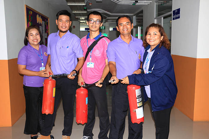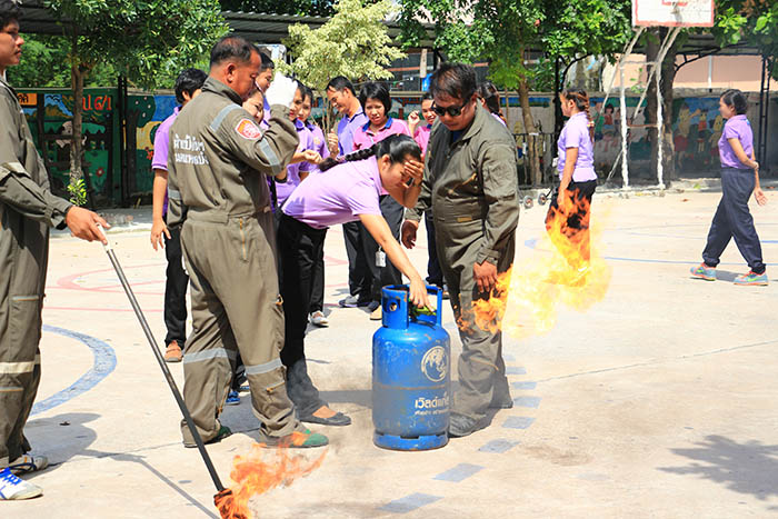 ) จัดอบรมและฝึกซ้อมแผนการป้องกันอัคคีภัย ให้กับตัวแทนครูและบุคลากรทางการศึกษา