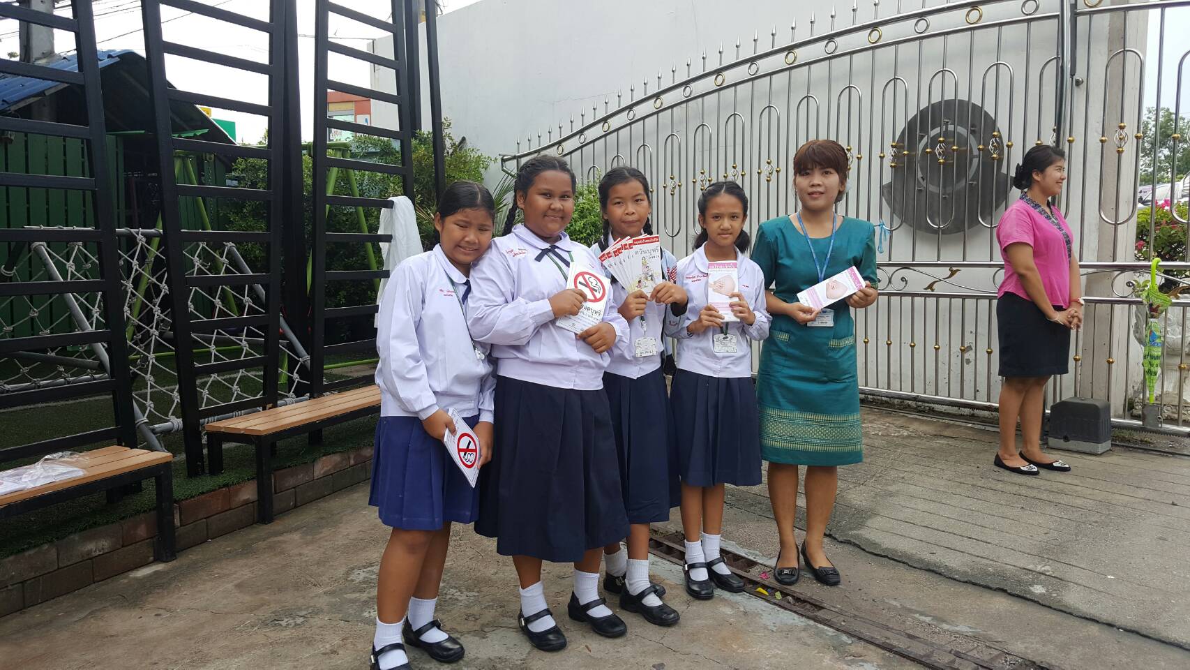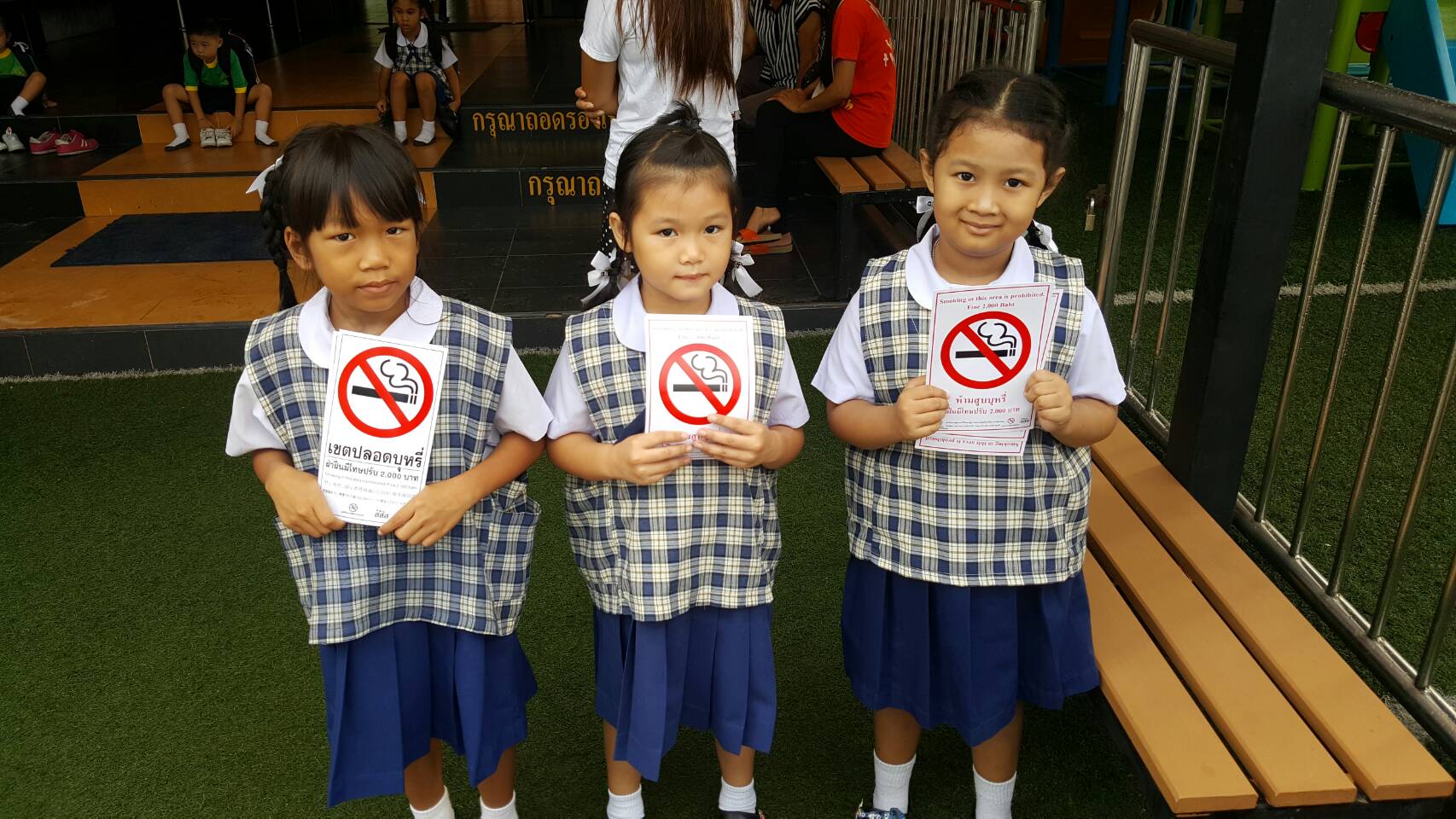 และการให้ความรู้เรื่องพิษภัยและโทษของการสูบบุหรี่ นอกจากนี้ครูผู้จัดมีกิจกรรมเดินรณรงค์แจกแผ่นพับ