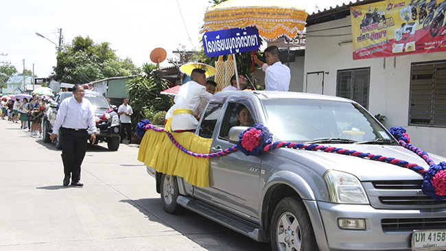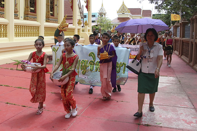 โดยมีขบวนแห่และนางรำ
