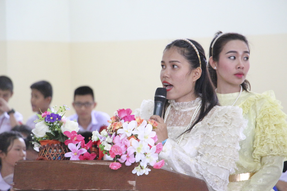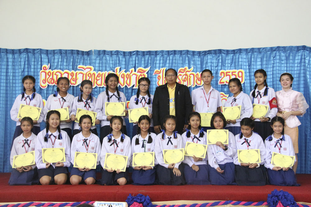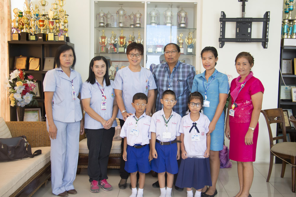 เป็นตัวแทนนำเด็กนักเรียนที่ตรวจพบปัญหาทางสายตารับมอบแว่นตาจากเจ้าหน้าที่