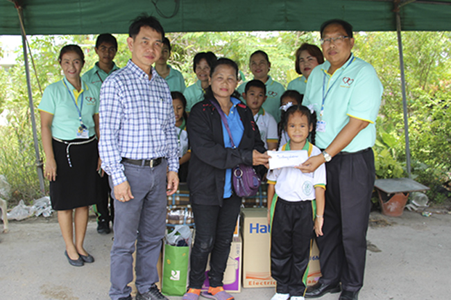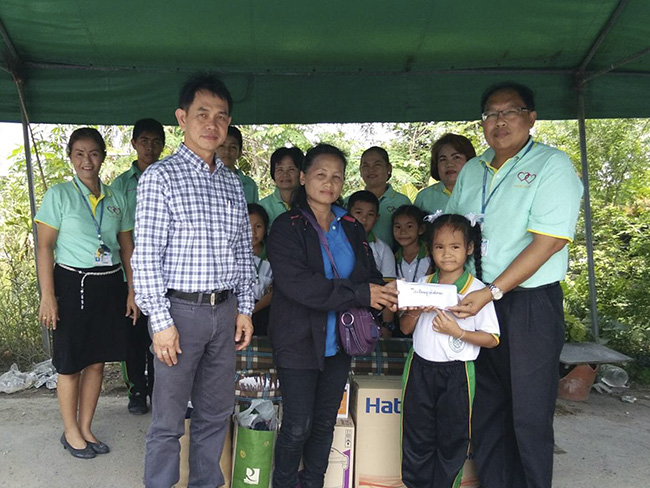 18 สิงหาคม 2559 คณะครูและนักเรียน นำโดย นายสนธยา ตุ๋นเจริญ ผู้อำนวยการ มอบเงิน เครื่องอุปโภค บริโภคให้กับผู้ปกครองเด็กหญิงณัฐธิดา อ่างทอง นักเรียนชั้น ป.2 ที่บ้านพัก ข้าวของเครื่องใช้ ถูกไฟไหม้ ณ บริเวณบ่อบำบัดน้ำเสีย เทศบาลนครแหลมฉบัง...