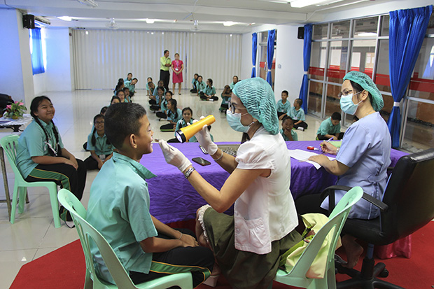 การดำเนินการงานทันตสุขภาพของนักเรียน โดยมีการตรวจสุขภาพปากและฟัน