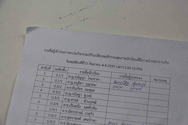 กิจกรรมให้ความรู้กับผู้ปกครองนักเรียน เรื่องการปรับเปลี่ยนพฤติกรรมสุขภาพนักเรียน ที่มีภาวะโภชนาการเกิน