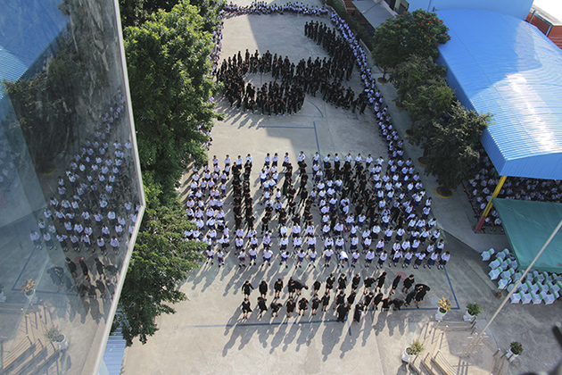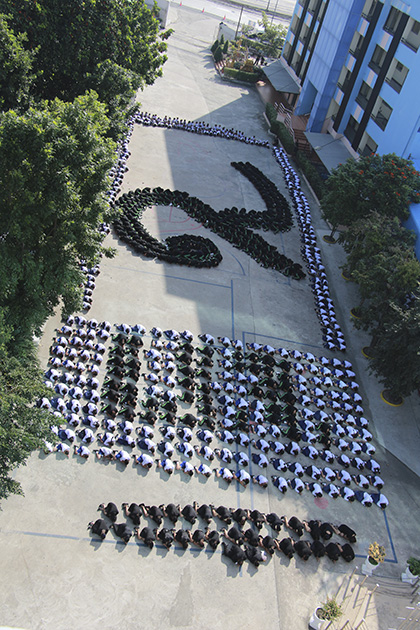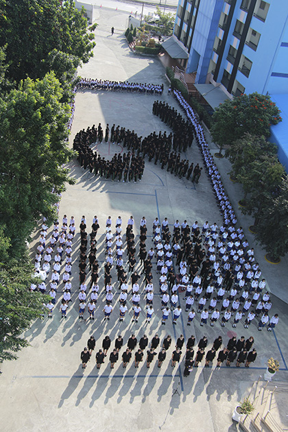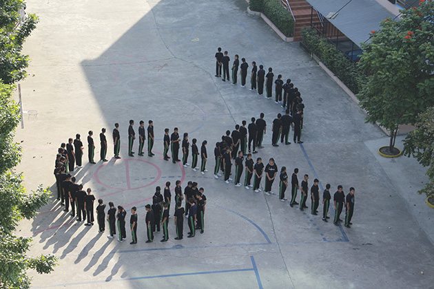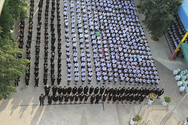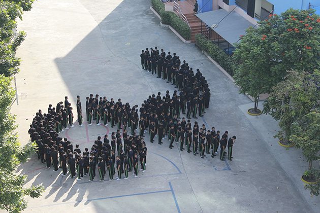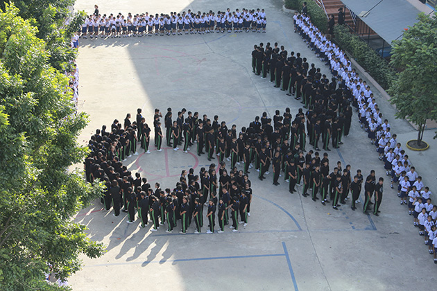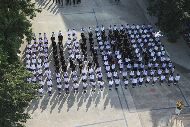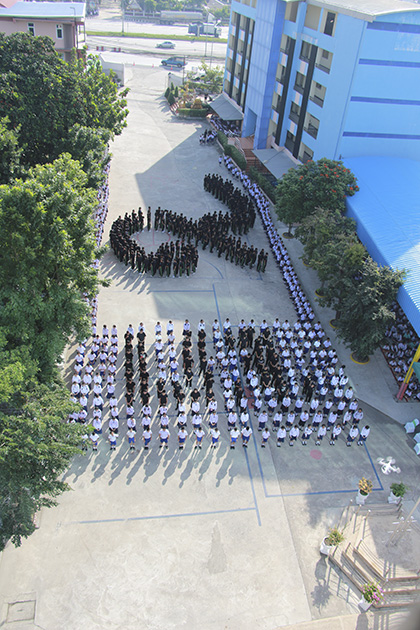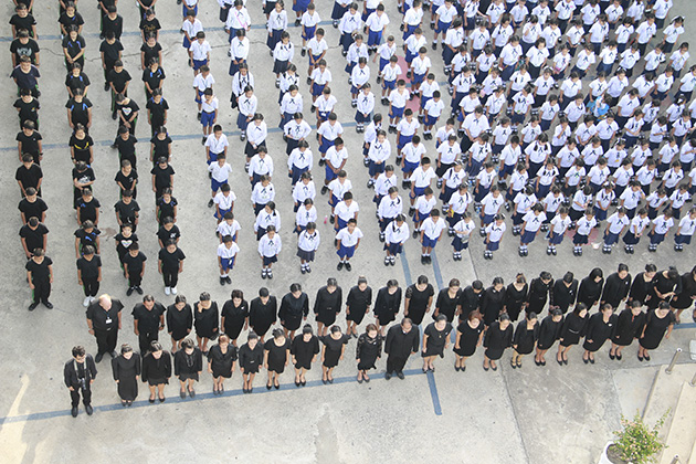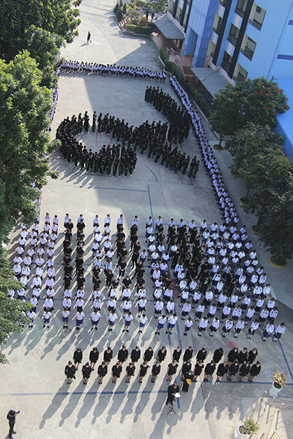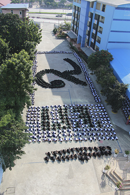 แด่องค์พระบาทสมเด็จพระปรมินทรามหาภูมิพลอดุลยเดช โดยมีนักเรียนทุกระดับชั้น