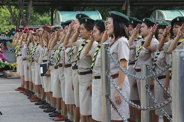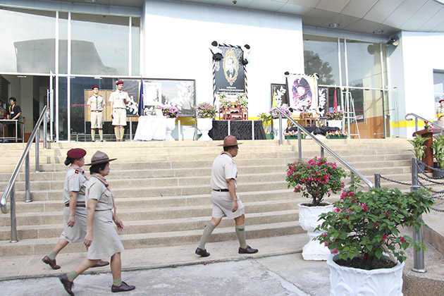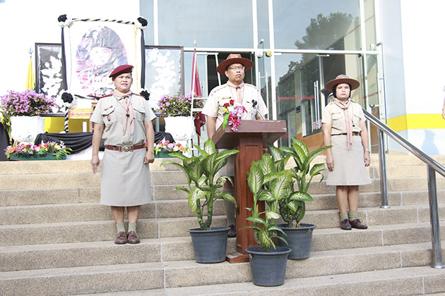 ผู้บังคับบัญชาลูกเสือและลูกเสือชาวบ้าน ได้ร่วมประกอบพิธีวางพวงมาลาและถวายราชสดุดี เพื่อน้อมรำลึกในพระมหากรุณาธิคุณพระผู้พระราชทานกำเนิดลูกเสือไทย และออกปฏิบัติกิจกรรมบำเพ็ญประโยชน์ ตามสถานที่สาธารณะอย่างพร้อมเพียงกันหลังเสร็จพิธี