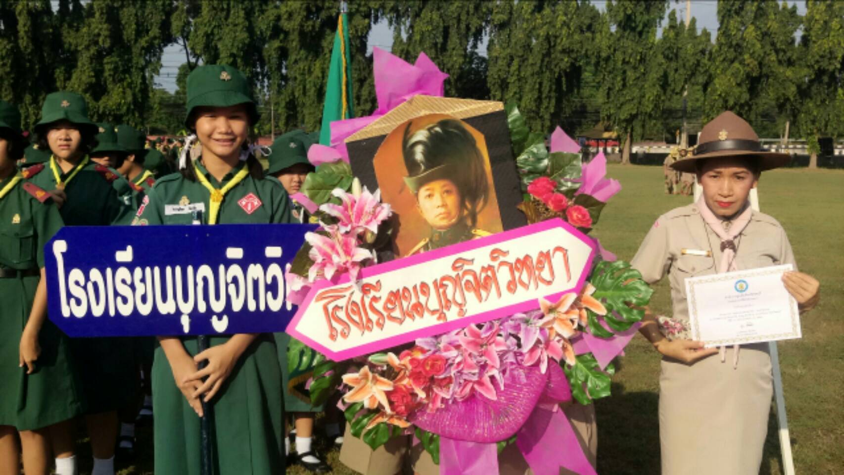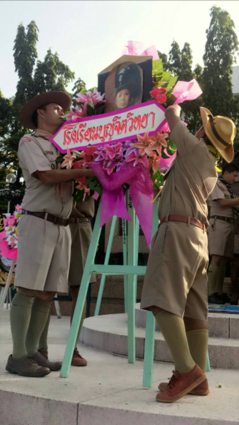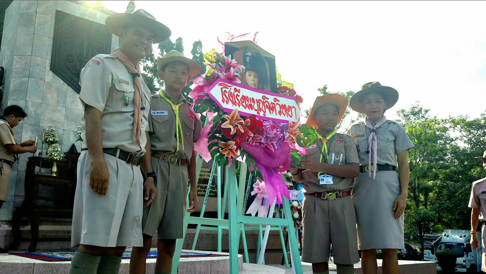 และคณะลูกเสือโรงเรียนเข้าร่วมพิธีถวายพวงมาลา