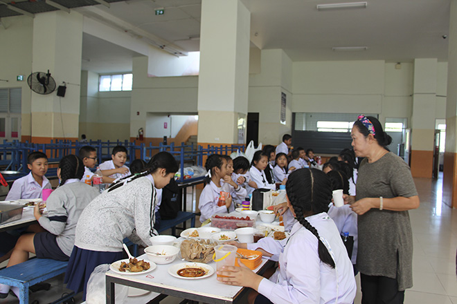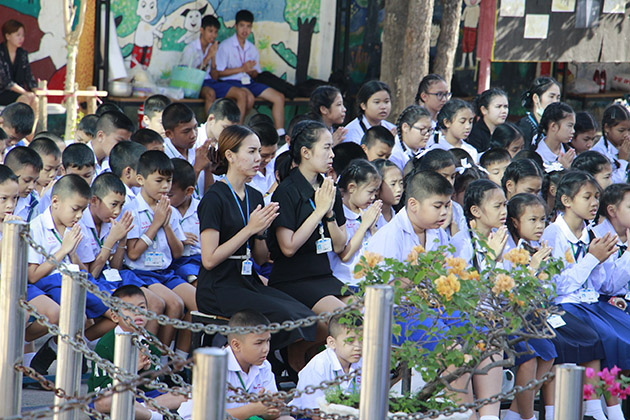 จากนั้นคณะครูและนักเรียน ทุกระดับชั้นสร้างความสัมพันธ์ไมตรีทานอาหารร่วมกัน (โดยงดกิจกรรมรื่นเริงเพื่อเป็นการถวายความอาลัย)