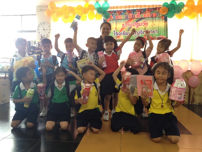 และจับฉลากของขวัญให้กับเด็กนักเรียน